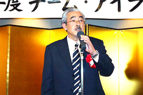 ![]() 出席された皆さんに感謝の言葉を述べとるとともに今年度から チームアイランズ独自で稚魚放流を行いたいと語る、國元会長 |