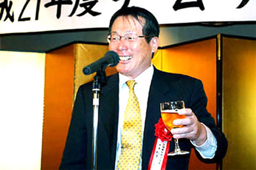 ![]() 面白笑トークで毎年会場を賑せる天理教加古大教会会長 松尾一則さんのご発声で乾杯をすることに |