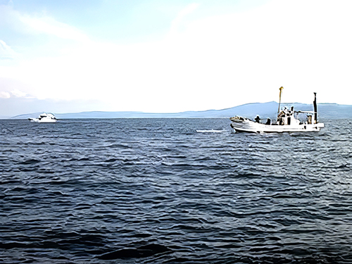 参加者全員、郡家丸に乗り込み午前7時10分、郡家漁港を出船した