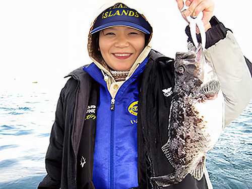 千鶴ママ、良型ソイ、ゲットに満面笑顔でございます