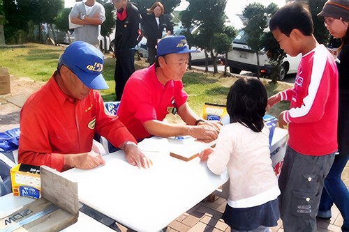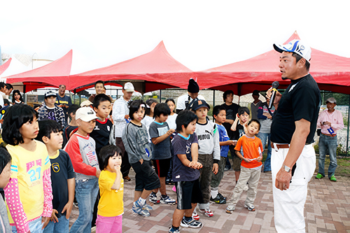 審査終了後、参加した、ちびっ子たちに釣りの楽しさと