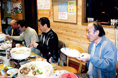 2009年1月5日、近隣のメンバー12名人が集まり、政木恵美子さん経営の「カラオケ喫茶・我がまま」に於いて新年会を行いました。