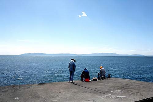 淡路島を眺める風光明媚な釣り場、家族連れで