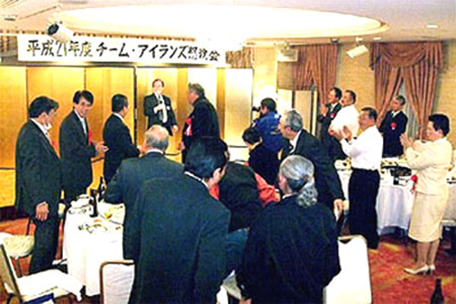 ![]() 出席された皆さんに感謝の言葉を述べとるとともに今年度から チームアイランズ独自で稚魚放流を行いたいと語る、國元会長 |
