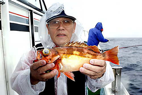 山中ちゃん、後半に運よく良型オキメバル、ゲット