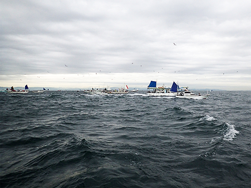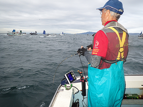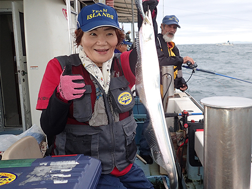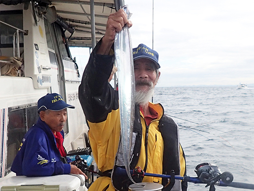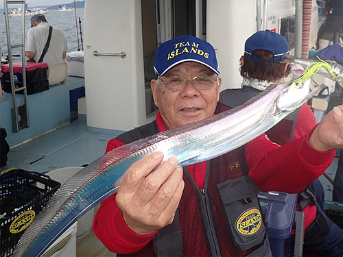 北西の風 海上 風力 4~5激しいローリング(横揺れ)全員、強風波受けながら苦戦を強いられ頑張った甲斐もなく期待したメーター級は お目にかかれずチビゴンばかりで一人平均10匹未満で終了した。年々減少傾向にある大阪湾のタチウオちゃん今後も余り期待できないようだ。 大会レポート:西本 正義
