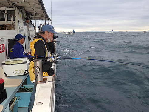 2025年10月12日、明石市林崎漁港を基地にしている 釣り船「きもと」住吉丸に乗り合い乗船「太刀魚釣り大会-1」を行いました。(参加者10名)