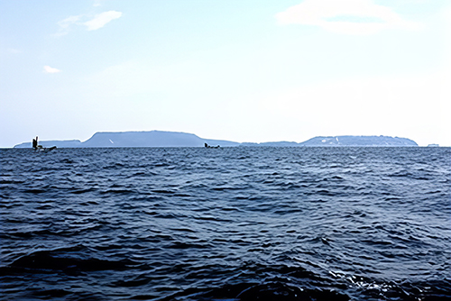 ゆっくり出船、新島沖のキンメダイ釣り場へ向かった