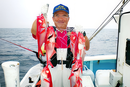 今回の釣行は一人平均30匹、全員で釣り上げたキンメダイは、合計150匹の好釣果に恵まれストレス解消になった。