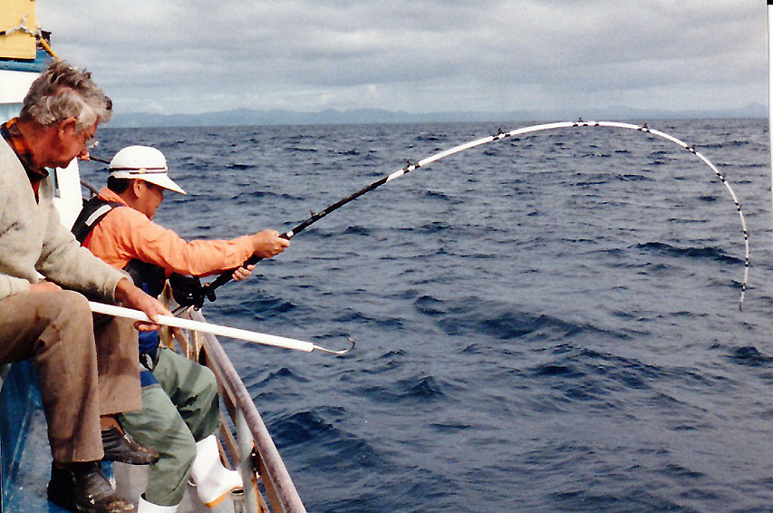 1991年5月、若い頃のオール阪神さんと一緒にトーローリング中、徳之島沖(太平洋側)