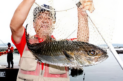 2008年8月、海恵で釣った大カンパチ、釣り堀名人に