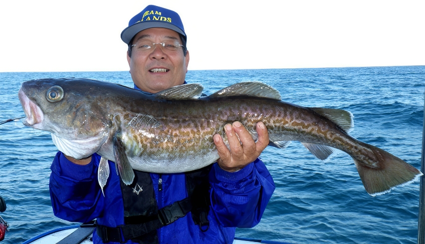 2012年10月20日、日本海丹後半島沖で釣った87pのマダラ釣り上げ竿頭になりました