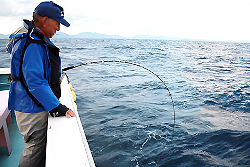 今回は、鬼オコゼ(イズカサゴ)を対象に初の2匹長寸で競われ鬼オコゼ、アコウ、一人平均8〜15匹とまずまずの釣果だった。