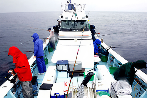 今回は、里波見漁港を拠点にどしゃぶりの雨の中、オキメバルをターゲットに