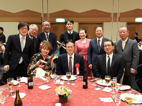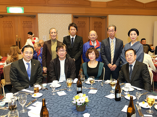 ![]() 地元の御大、キング醸造(株)及び日の出福祉会 医療法人社団、最高顧問 大西壯司様のご祝辞ご挨拶の後、笑顔で乾杯のご発生、パーティースタート |