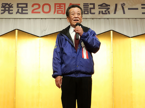 ![]() 滞りなく終了した20周年記念パーティー、万歳三唱で無事終了 |
