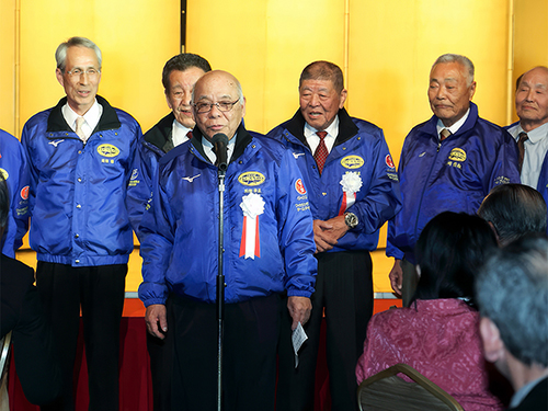 ![]() 終宴に川田幸正、遠征企画部長の締めのあいさつ |
