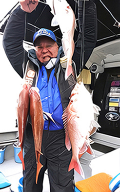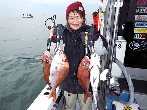 クラブのベテラン女性釣り師、中村千鶴さんも4連ゲット!