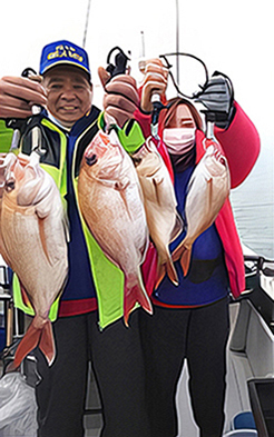 人気ターゲット魚である。今回は、大潮回り速潮のため、朝一の仕掛け投入誘いが釣果の鍵(チャンス)だった。短い時合を的確に捉えた方が好釣果に繋がった。