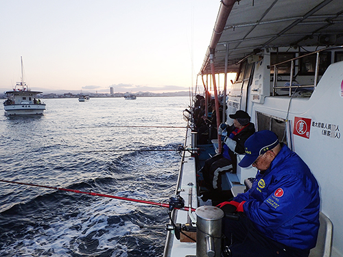 午前6時に林崎漁港を出船、皆との直ぐ前の水深40メートルの所が釣り始める