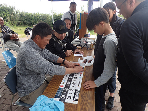 午前11時30分から釣りあげた お魚一匹長寸(サイズ)の審査受付開始