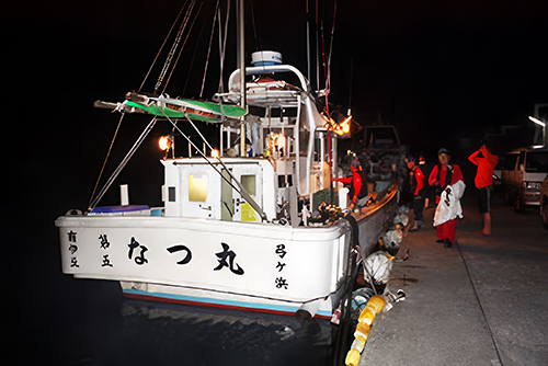 阿古地区の坪田港へ入港した