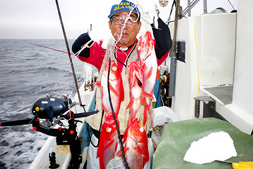 キンメダイ狙いパートナ-2は、日程を2日間伸ばし大物を狙い、大噴火でおなじみ三宅島や御蔵島などを転々したが