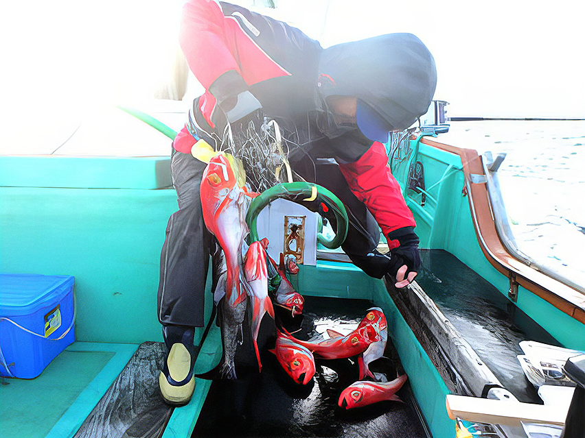 2015年7月20日、鹿児島県奄美大島沖で釣れた深海の最高級魚、オナガダイ(ハマダイ)