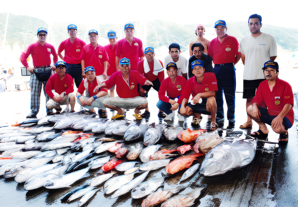![]() 釣りたての新鮮なお魚の刺身を肴に名瀬漁協関係者及び 同市役所関係者を交えて 打ち上げ式で親睦を深めた |