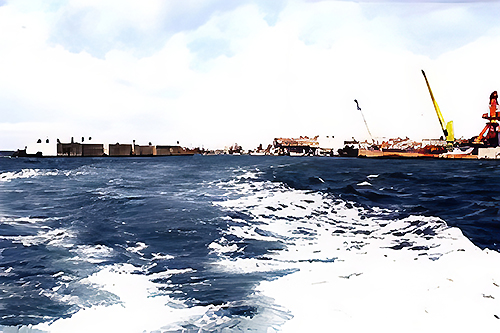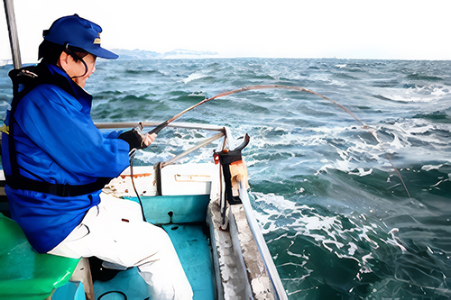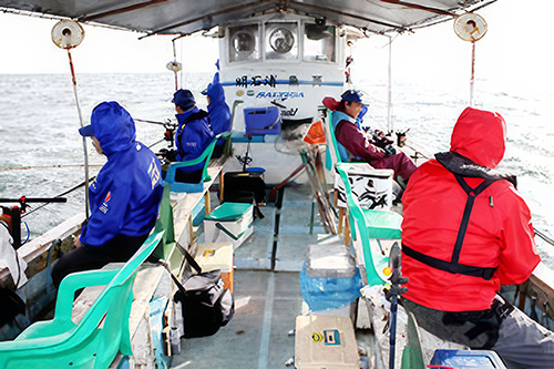 午前7時、明石丸に参加者11人が乗り込み時化の中、漁港を出船した