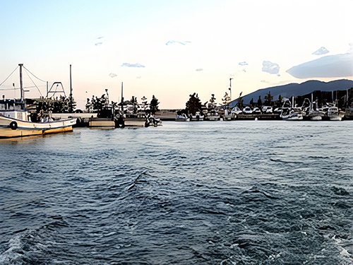 参加者全員、郡家丸に乗り込み午前7時10分、郡家漁港を出船した