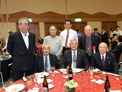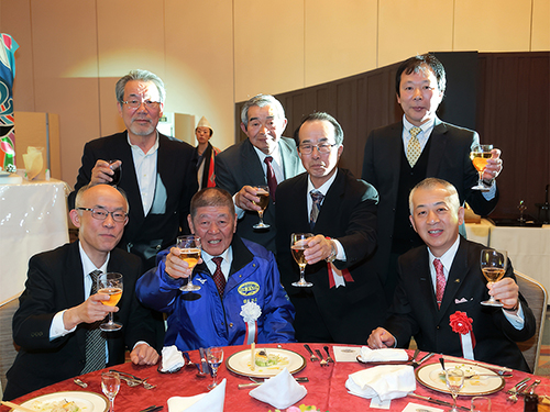 ![]() 地元の御大、キング醸造(株)及び日の出福祉会 医療法人社団、最高顧問 大西壯司様のご祝辞ご挨拶の後、笑顔で乾杯のご発生、パーティースタート |