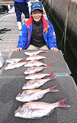クラブのベテラン女性釣り師、中村千鶴さんも4連ゲット!