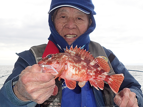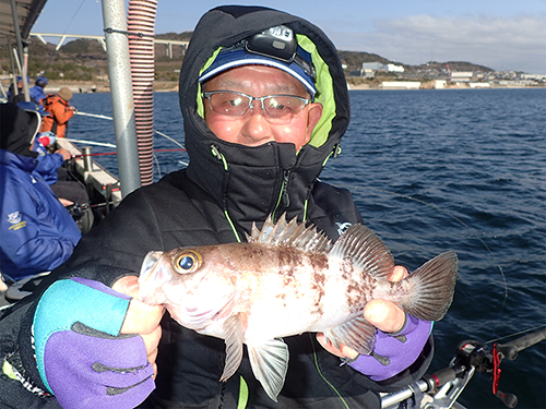 本命のメバルは誰もアタらない中、唯一ガシラ(カサゴ)を釣り上げた聖ちゃん
