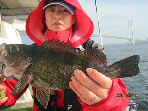 2026年4月12日、明石市林崎漁港を基地にしている 釣り船「きもと」住吉丸に乗り合い乗船「メバル釣り大会-3」を行いました。(参加者8名))