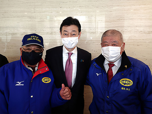 ![]() 左から川田幸正、第9区選出、西村康稔 先生、国元洋正 |